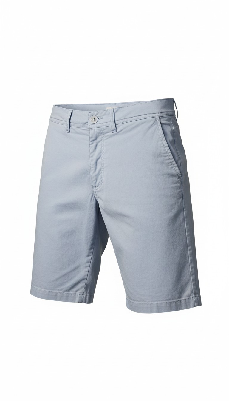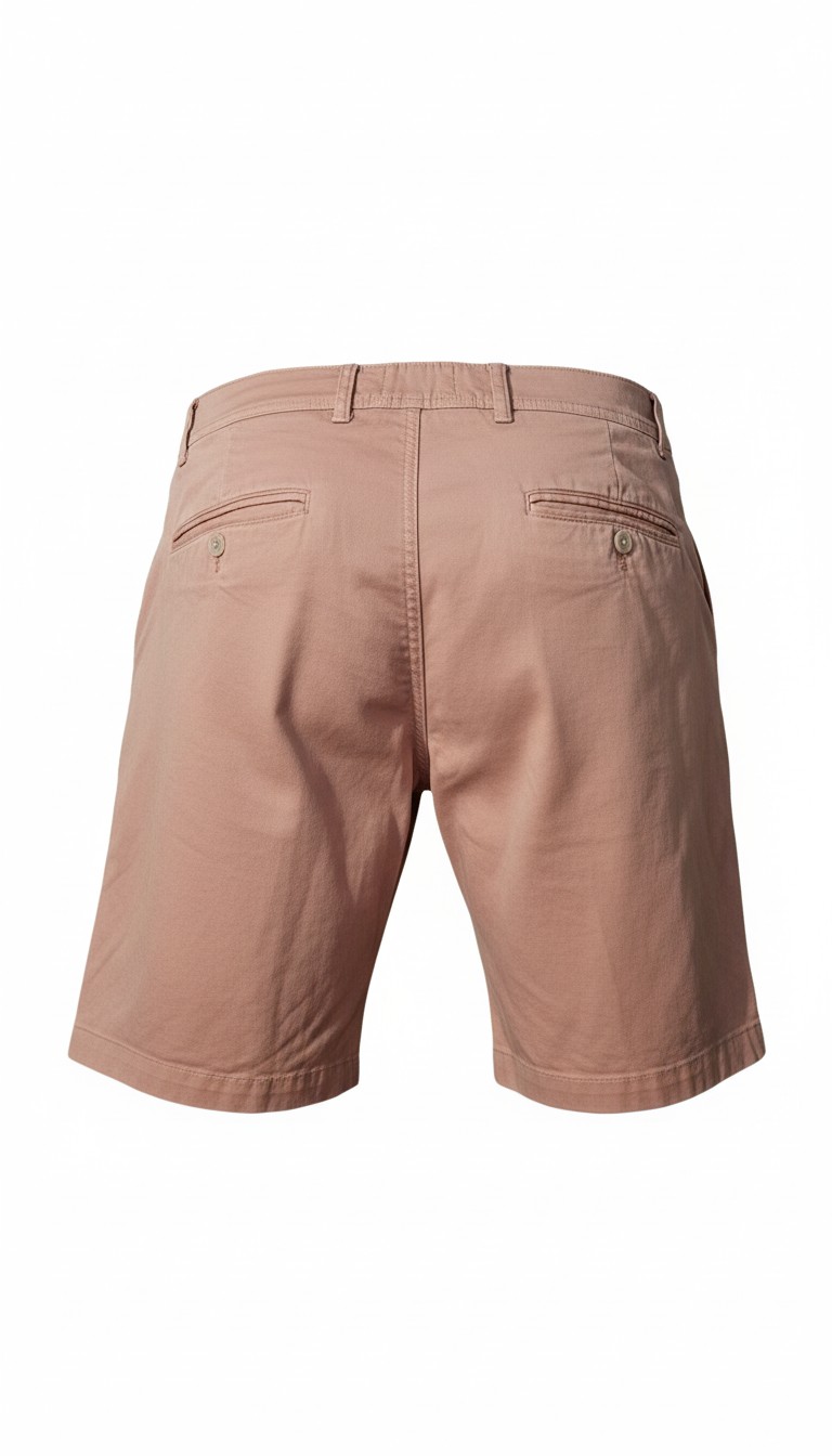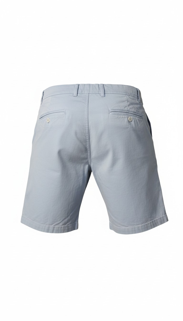 À l’avant, le bermuda est équipé de deux poches en biais, discrètes et pratiques, parfaitement intégrées à la ligne du vêtement. La braguette est fermée par une fermeture éclair robuste, complétée par un bouton de ceinture ton sur ton, assorti aux boutons présents à l’arrière.