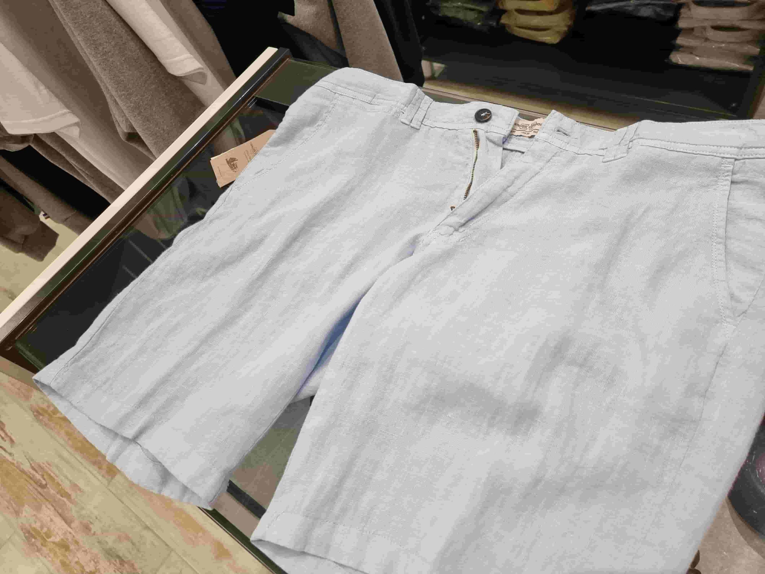 Bermuda Lin IBIZA homme – 100 % lin – Beige ou Bleu ciel