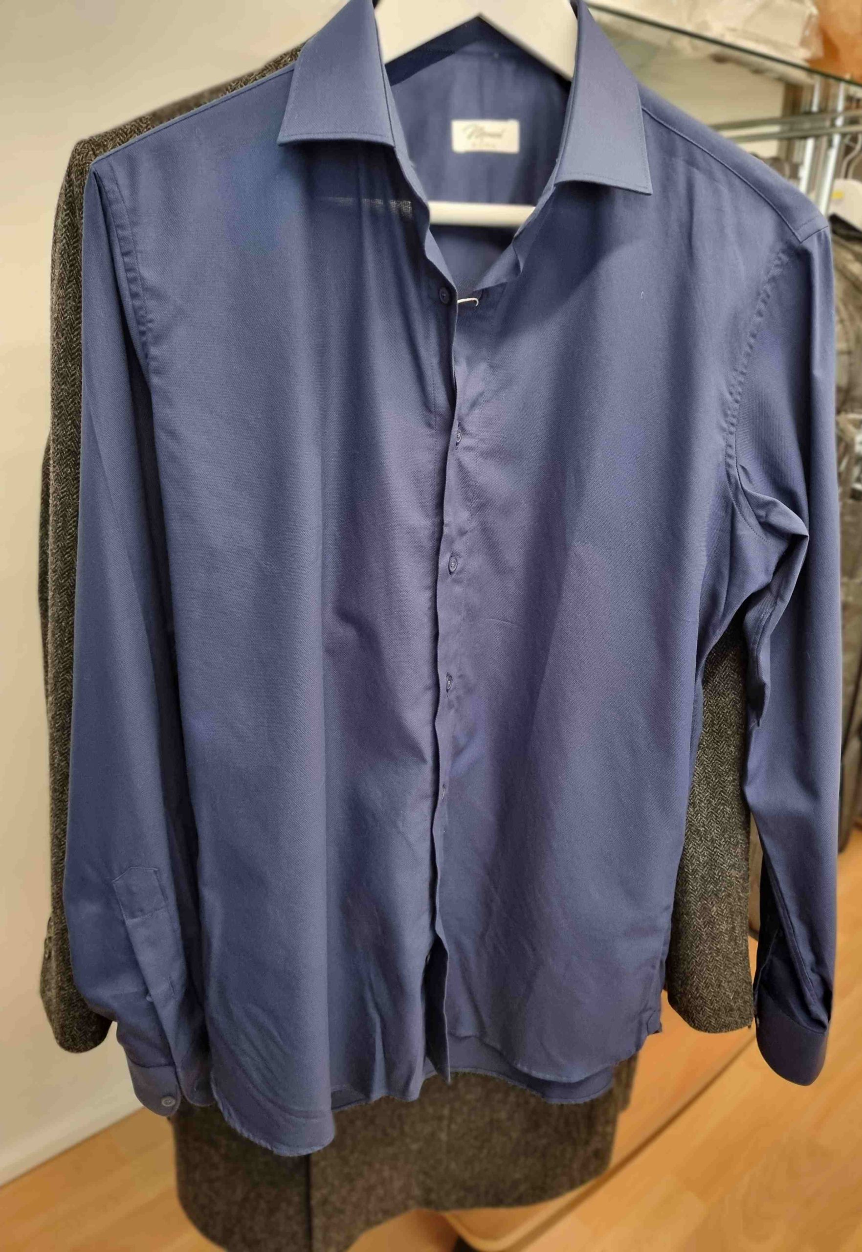 Son col boutonné et ses poignets arrondis apportent une touche de classicisme, rehaussée par des boutons ton sur ton d’un bleu subtil. Fabriquée en Italie, cette chemise témoigne du savoir-faire textile italien, avec une attention particulière portée aux finitions et à la qualité des matériaux.