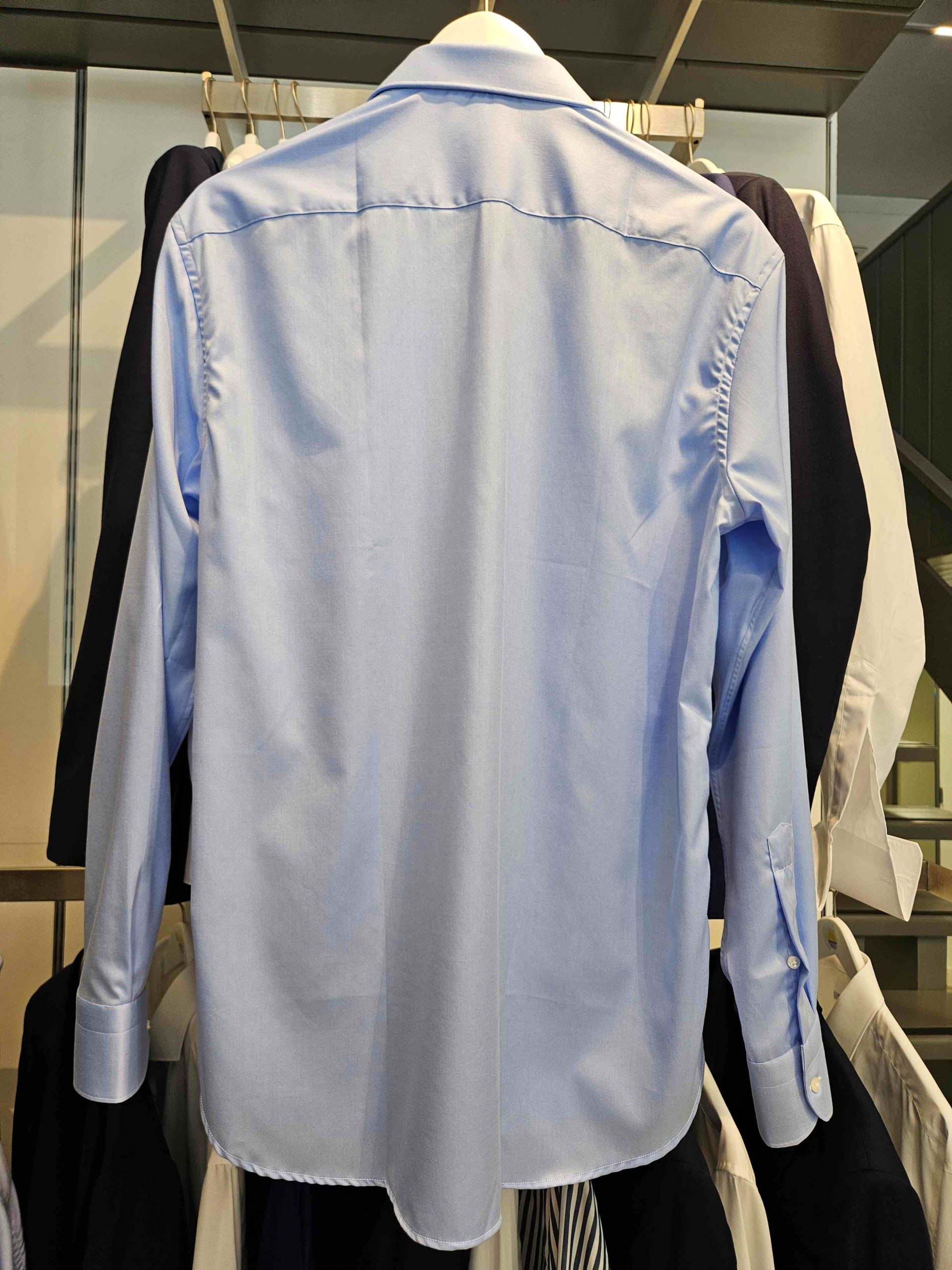 Apportez une touche de raffinement à votre vestiaire avec cette chemise bleu ciel en twill, confectionnée en 100 % coton. Sa coupe slim sans pince au dos épouse naturellement la silhouette pour un look ajusté et moderne, sans compromettre le confort.