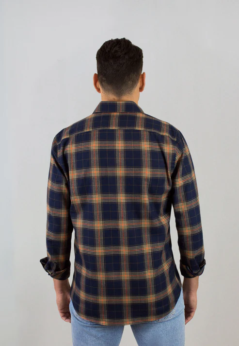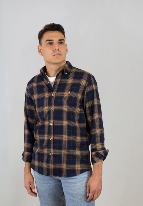 La chemise Don de Patadegayo combine élégance, confort et responsabilité. Confectionnée en 100% coton, elle offre un toucher agréable et un confort idéal à porter au quotidien. Son motif écossais bleu marine rehaussé de touches ocre et beige apporte une allure masculine et équilibrée, facile à associer avec un jean brut ou un pantalon plus habillé.