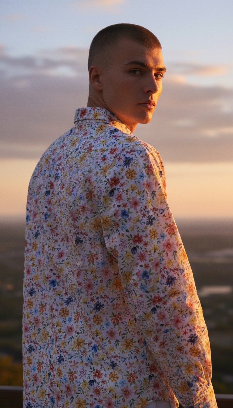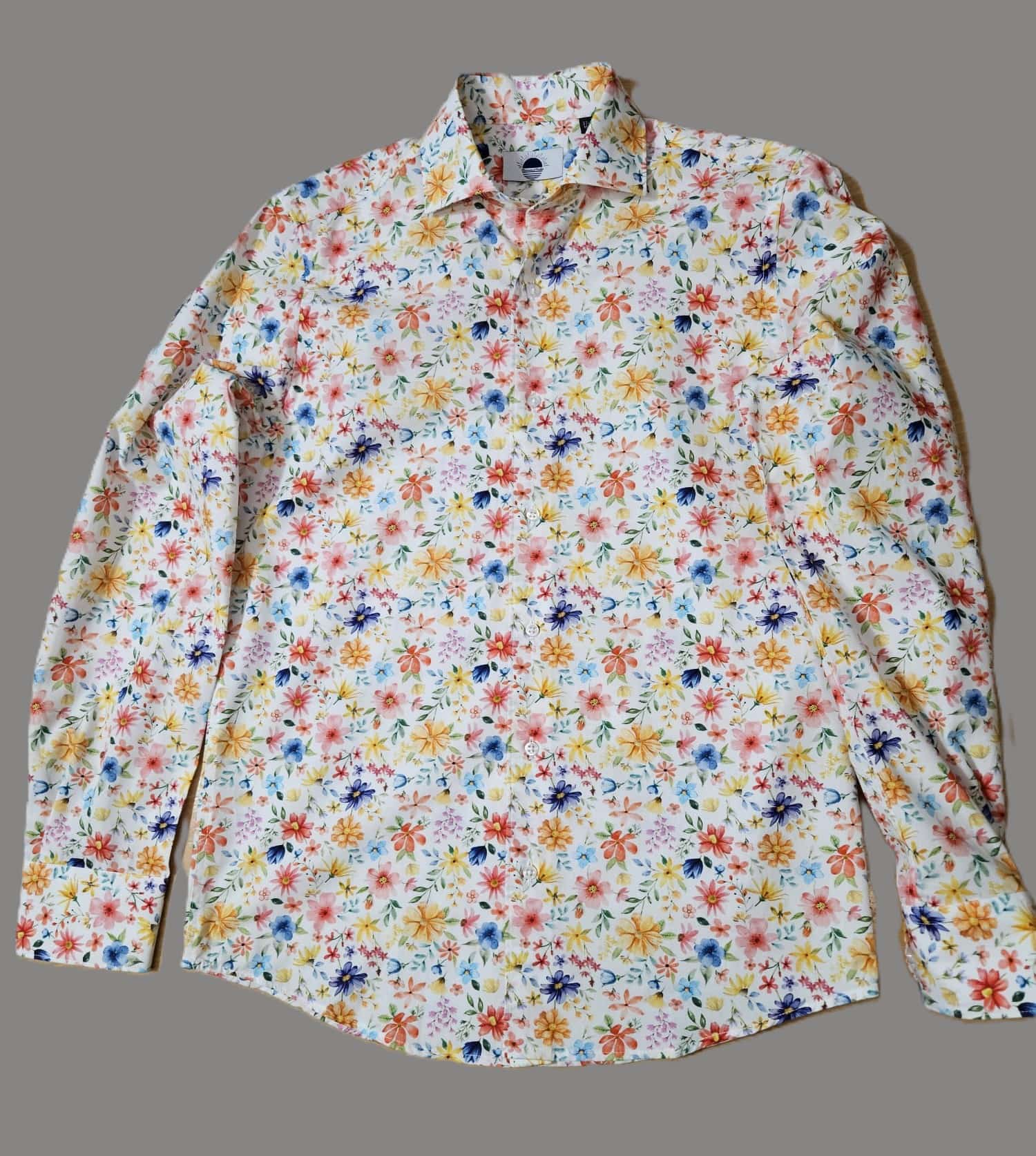Inspirée par les paysages entre terre et océan, cette chemise se décline en deux interprétations florales. L’une évoque des tonalités profondes et contrastées, rappelant les fins de journée face à l’océan. L’autre, plus lumineuse, fait écho aux matinées ensoleillées et aux jardins en fleurs baignés de lumière. Deux ambiances, une même signature : celle d’un style affirmé, subtil et résolument estival.