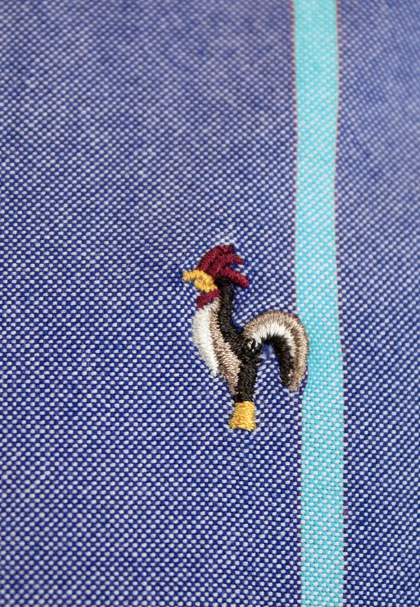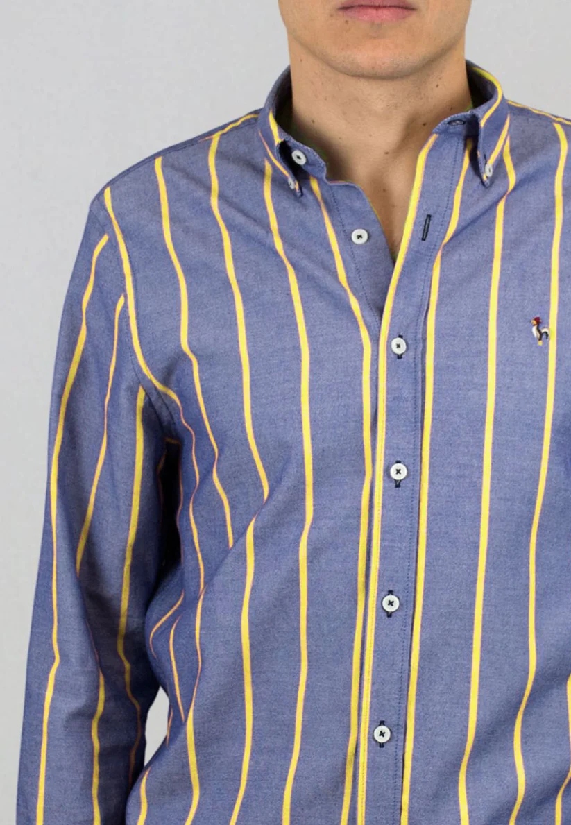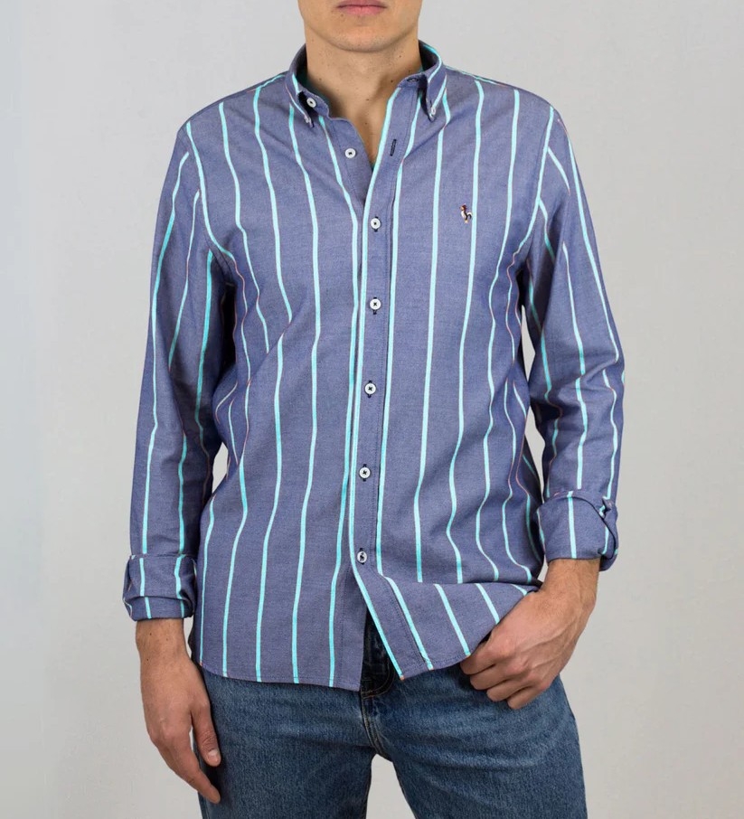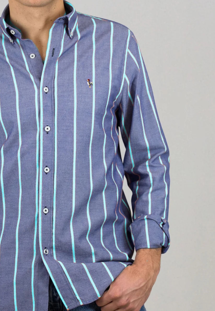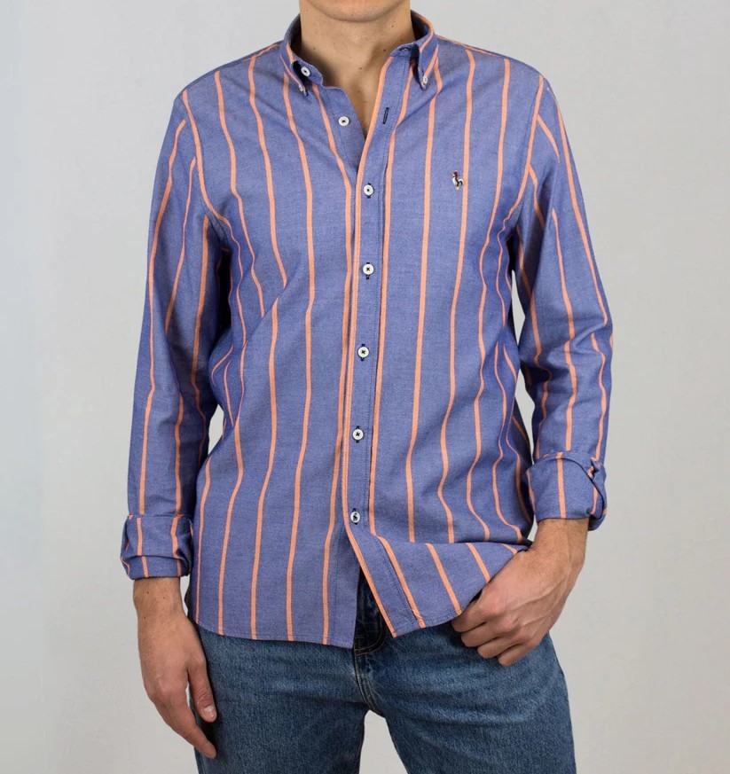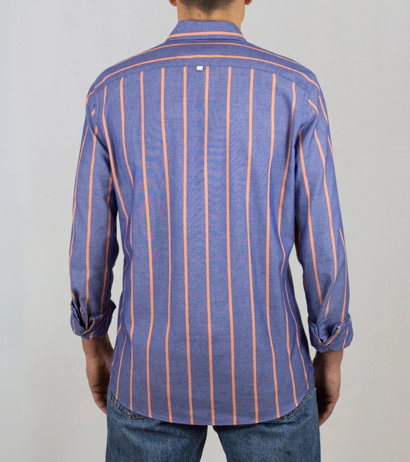 Avec son motif à rayures verticales et ses couleurs vibrantes – orange ou turquoise – cette chemise ne passe pas inaperçue. Elle combine parfaitement élégance estivale et confort naturel, avec une coupe moderne, un col boutonné et des poignets ajustables pour une tenue soignée.
