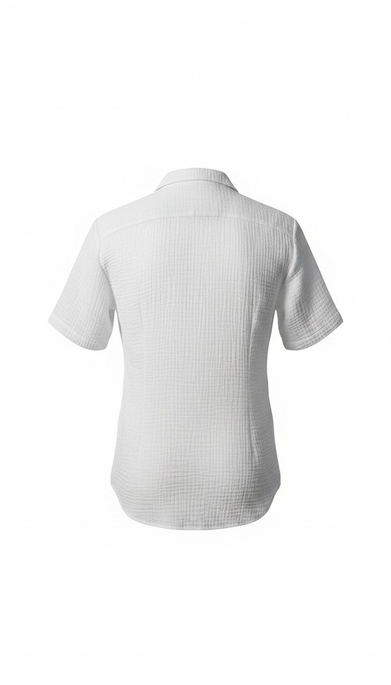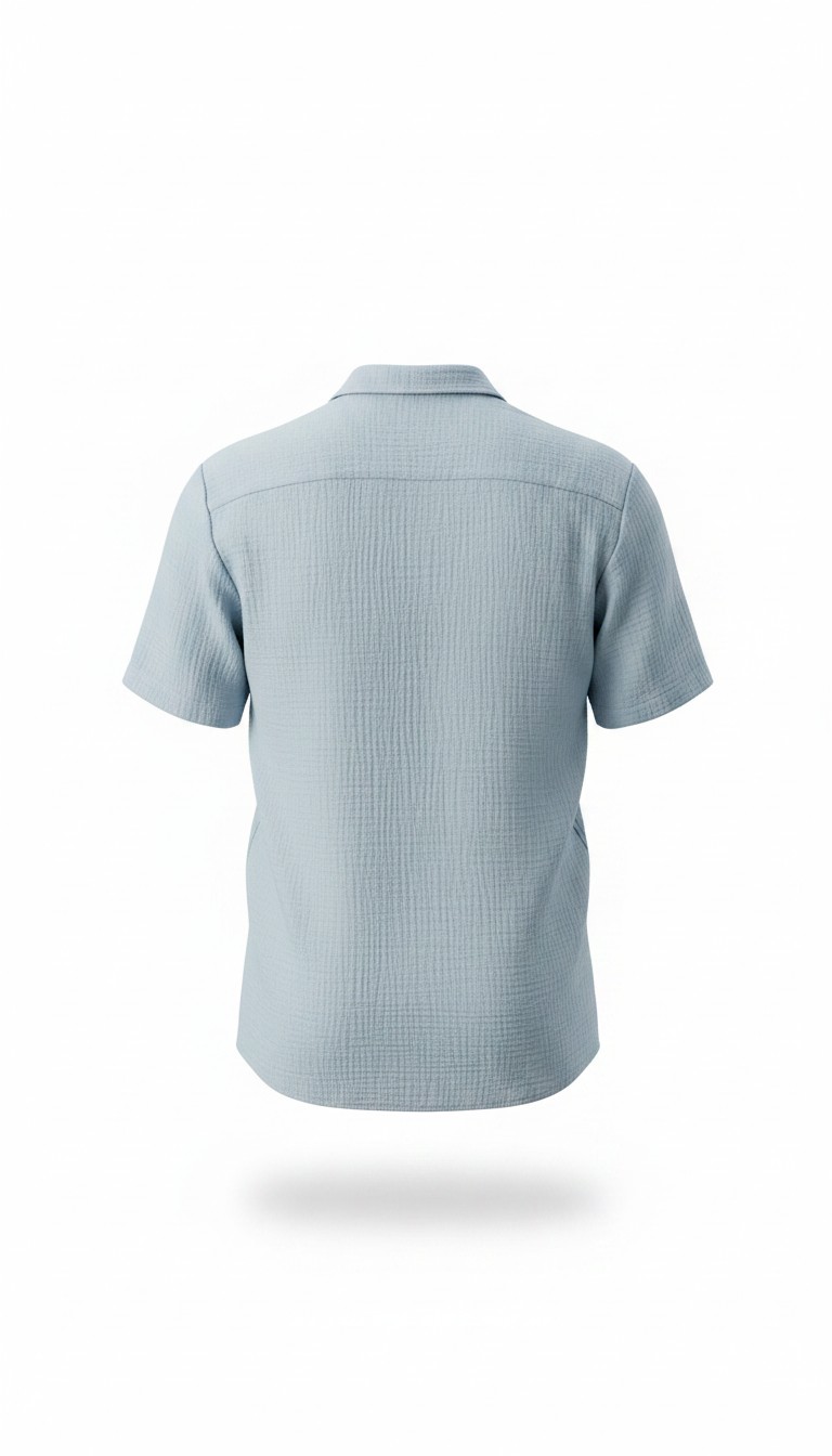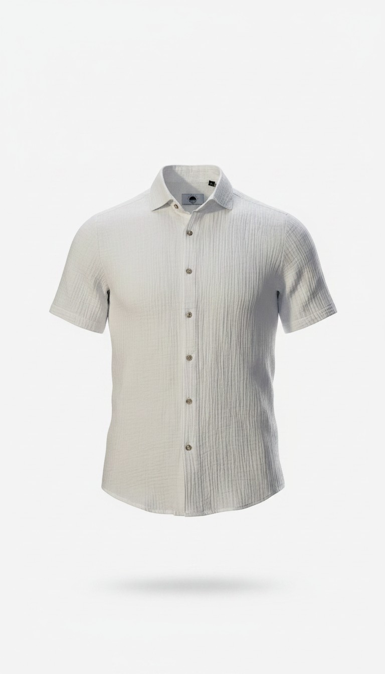 Confectionnée en 100% gaze de coton, cette chemise se distingue par son tissu gaufré. En confection, le coton gaufré est une matière légèrement texturée, obtenue grâce à un tissage spécifique qui crée un effet de relief irrégulier. Ce procédé permet au tissu de ne pas coller à la peau, favorisant la circulation de l’air et apportant une sensation de fraîcheur particulièrement appréciable en été. Son aspect subtilement froissé lui donne également un caractère authentique et évite un repassage trop contraignant.