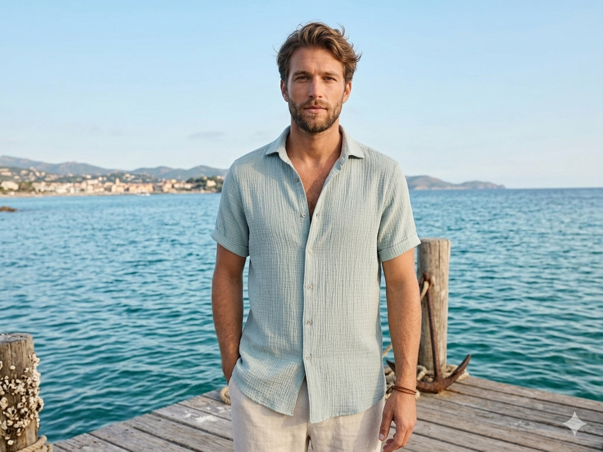 Apportez de la texture et du relief à votre vestiaire estival avec cette chemisette homme Marinière & Maillot en coton gaufré. Une pièce légère et élégante, pensée pour conjuguer confort, respirabilité et style naturel.