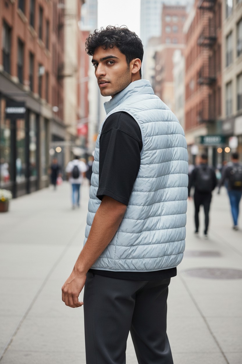 Facile à associer avec un jean, un chino ou un sweat, cette doudoune sans manche s’inscrit dans un style casual chic, inspiré de l’univers marin et urbain.