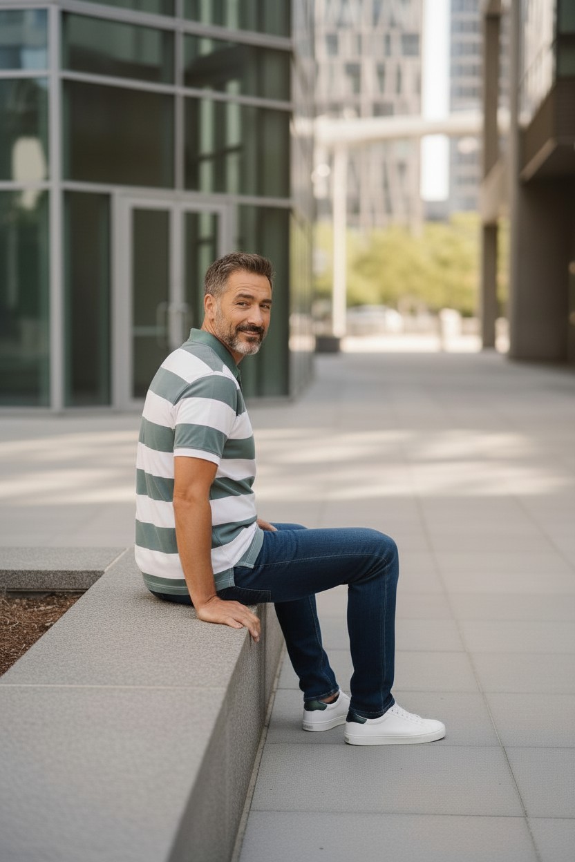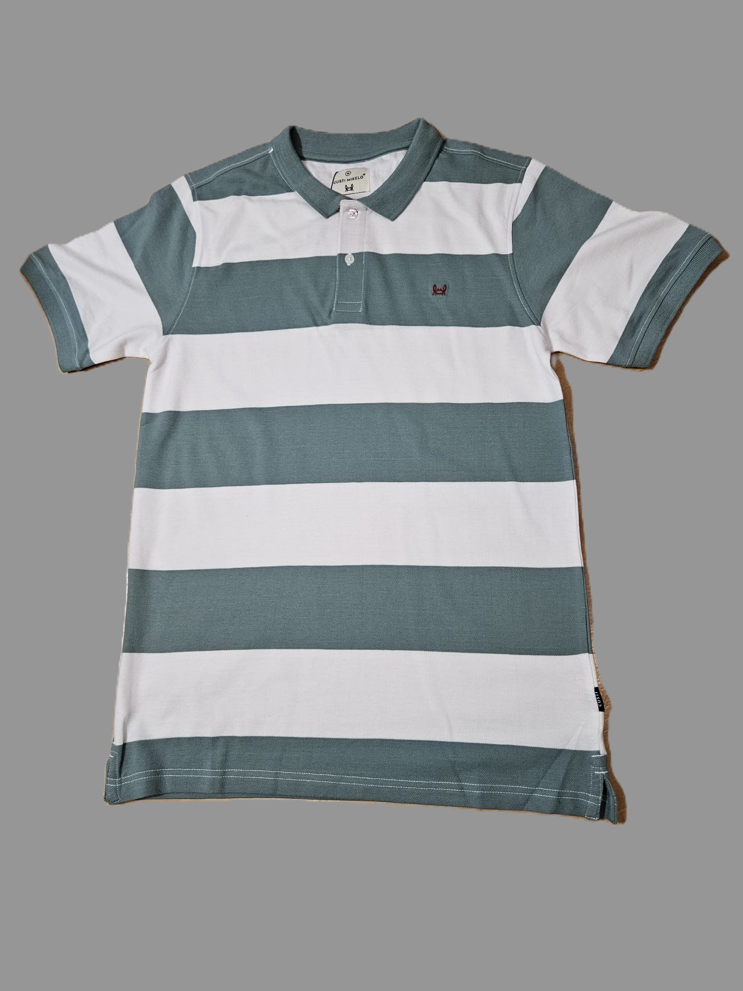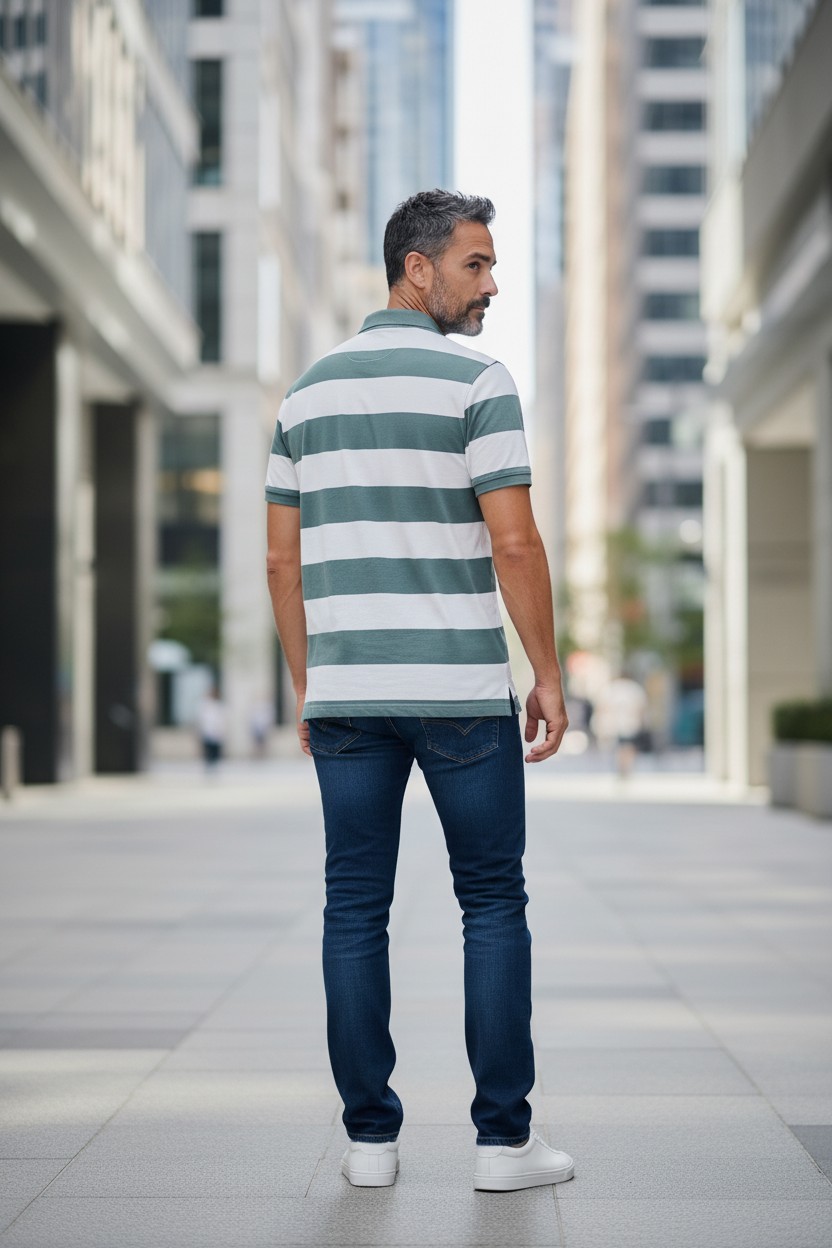 Le polo Monaco de Custi Mikelo incarne l’équilibre parfait entre élégance décontractée et inspiration maritime. Ses rayures vert bleuté et blanc évoquent immédiatement les nuances de l’océan, entre eaux profondes et reflets lumineux du littoral.