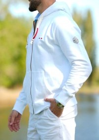 Fabriquée avec soin au Portugal, cette veste zippée blanche est un incontournable du vestiaire masculin, entre confort, qualité et élégance décontractée.