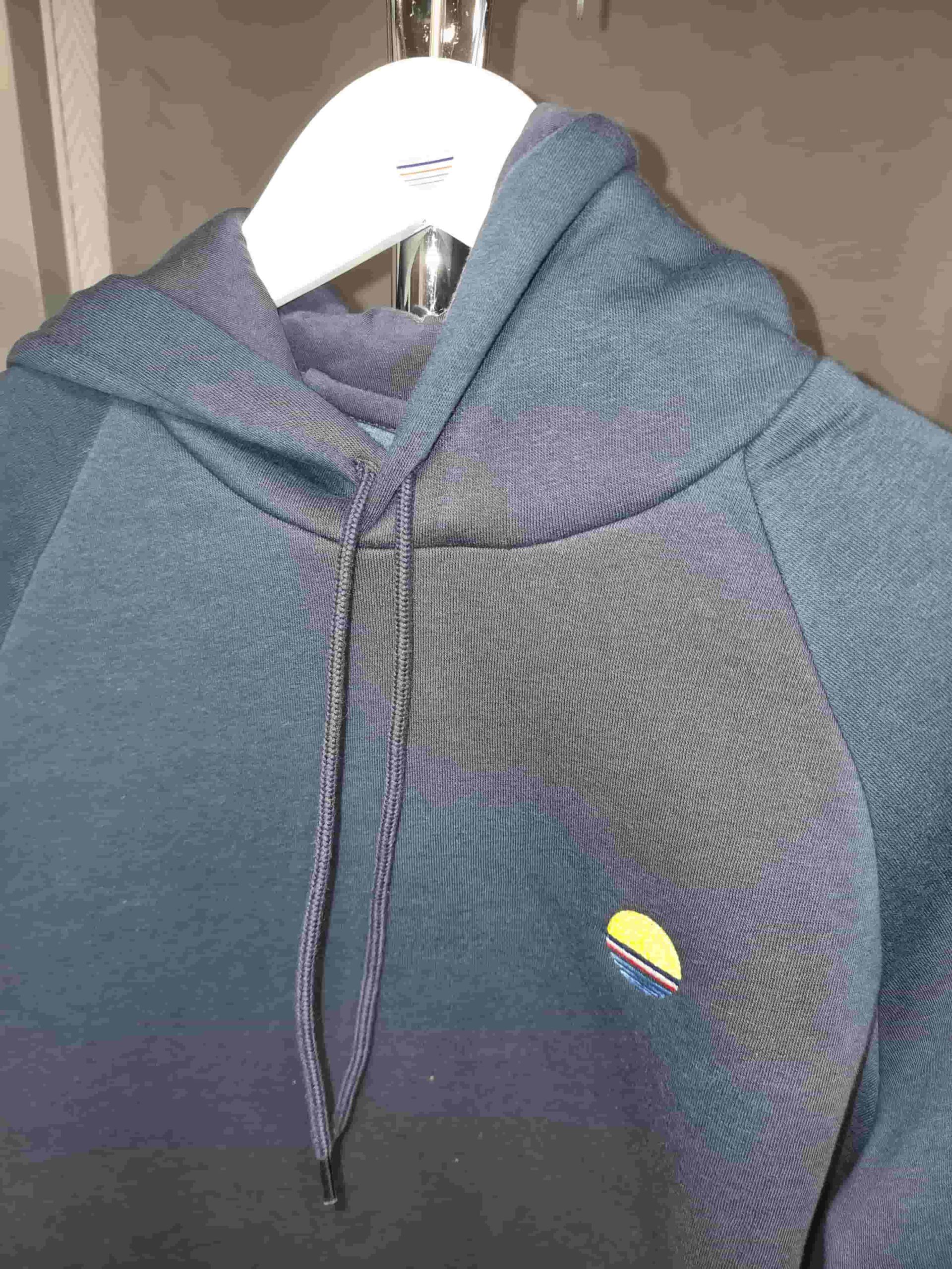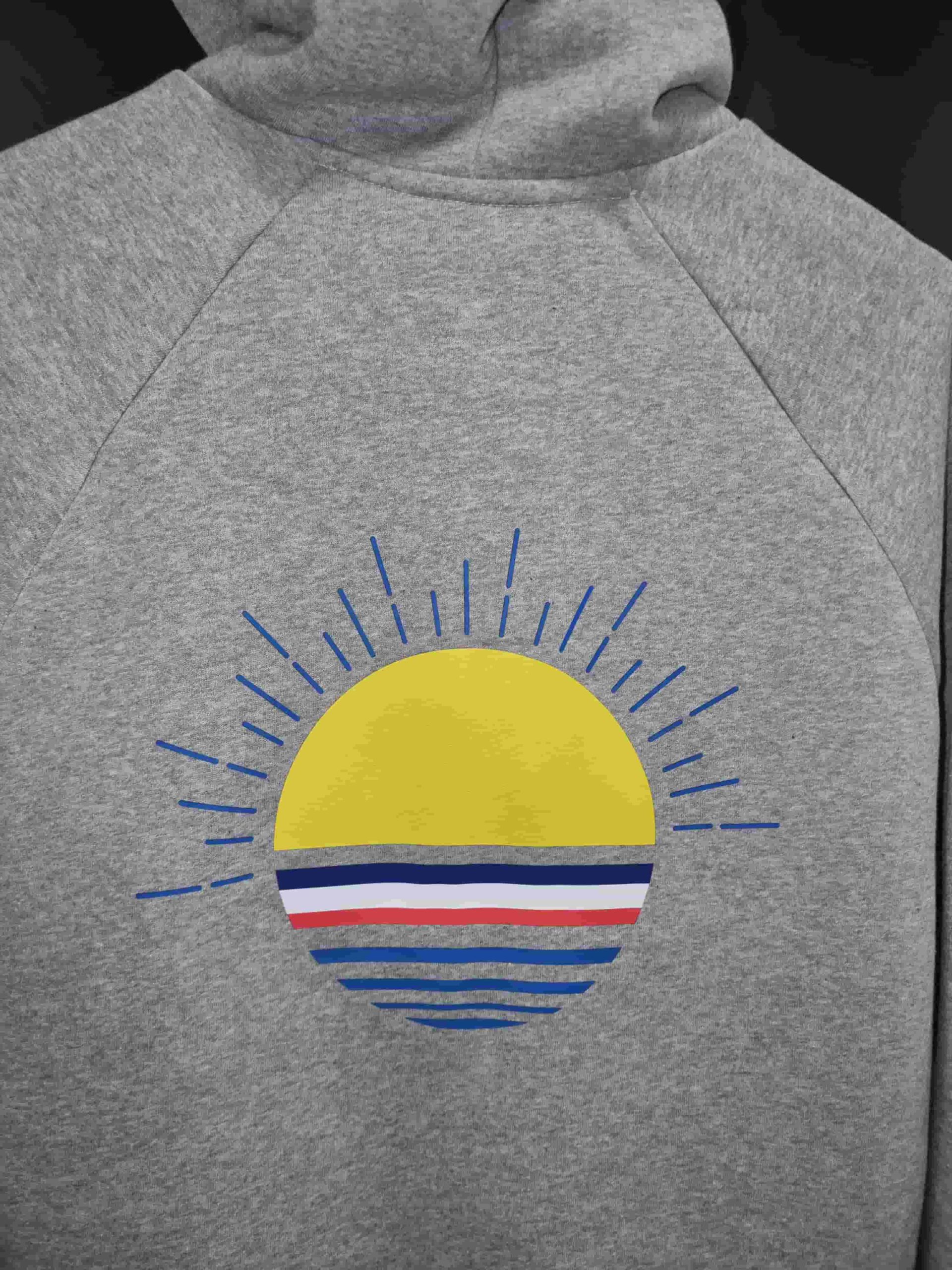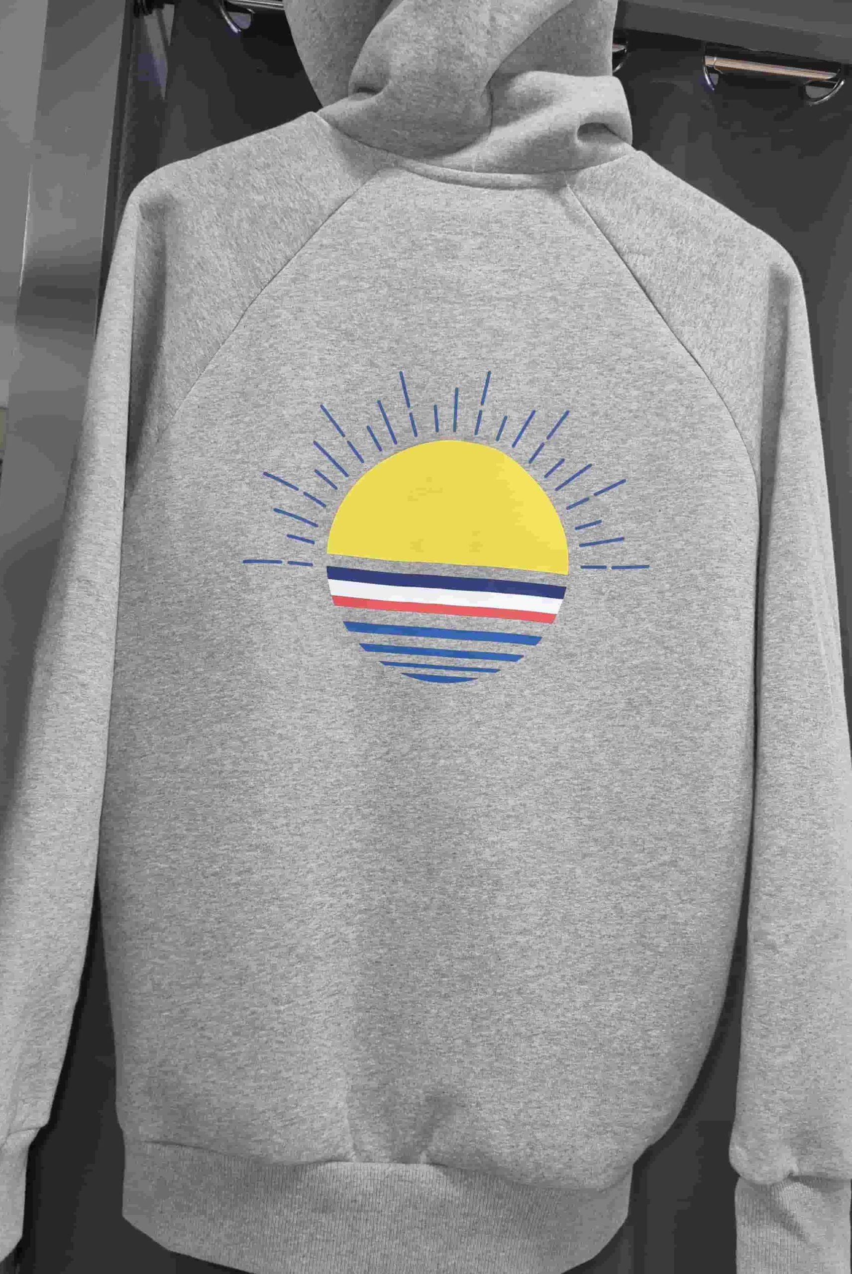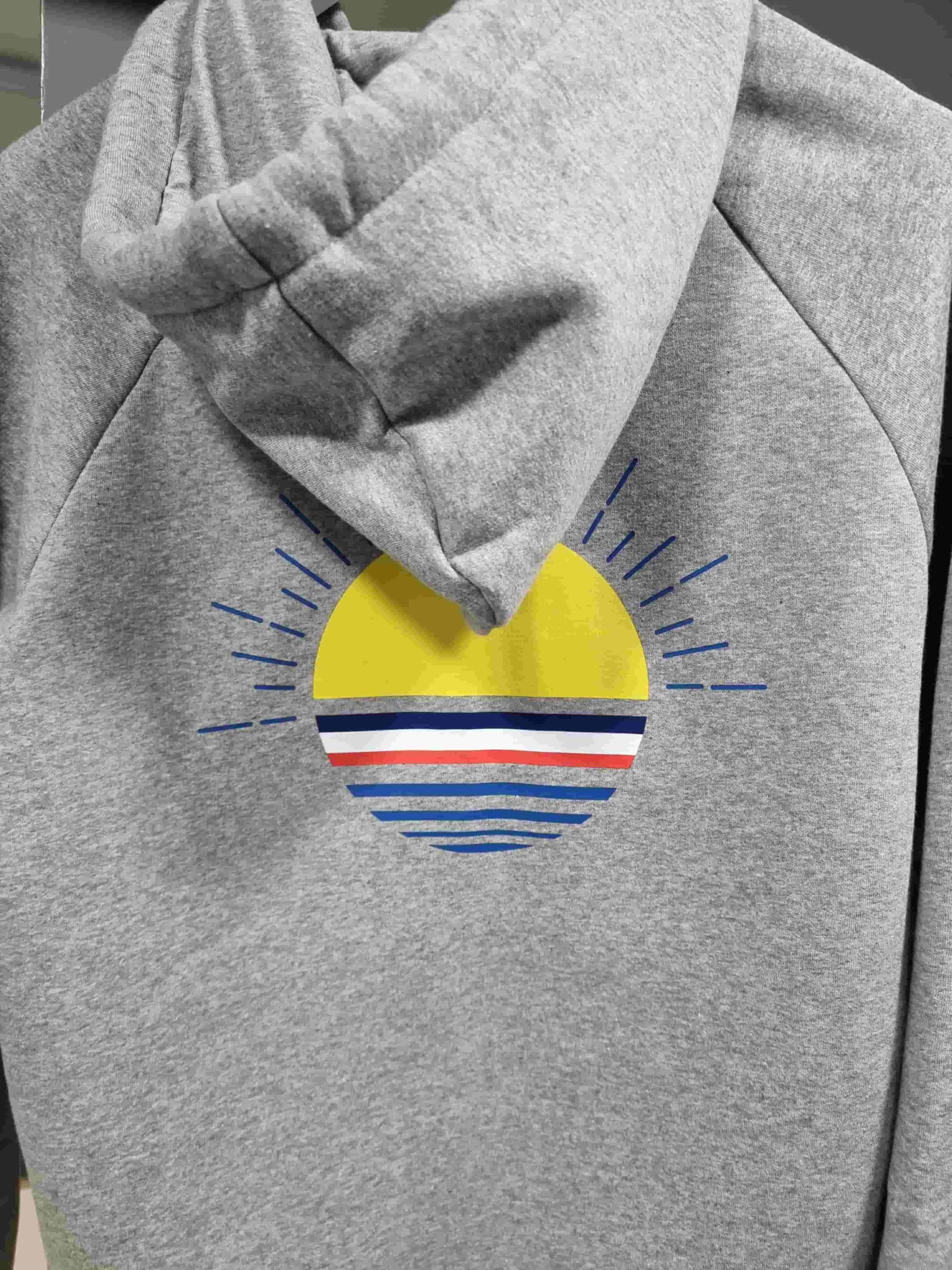 Côté style, le Sweat BEN se distingue par son logo brodé sur la poitrine, son impression DTF au dos, une technique de transfert innovante, souple, résistante et durable. Chaque détail a été travaillé avec soin : puce de taille à l’encolure, cordon coordonné, œillets en tissu, et un discret ruban tricolore cousu sur le côté.