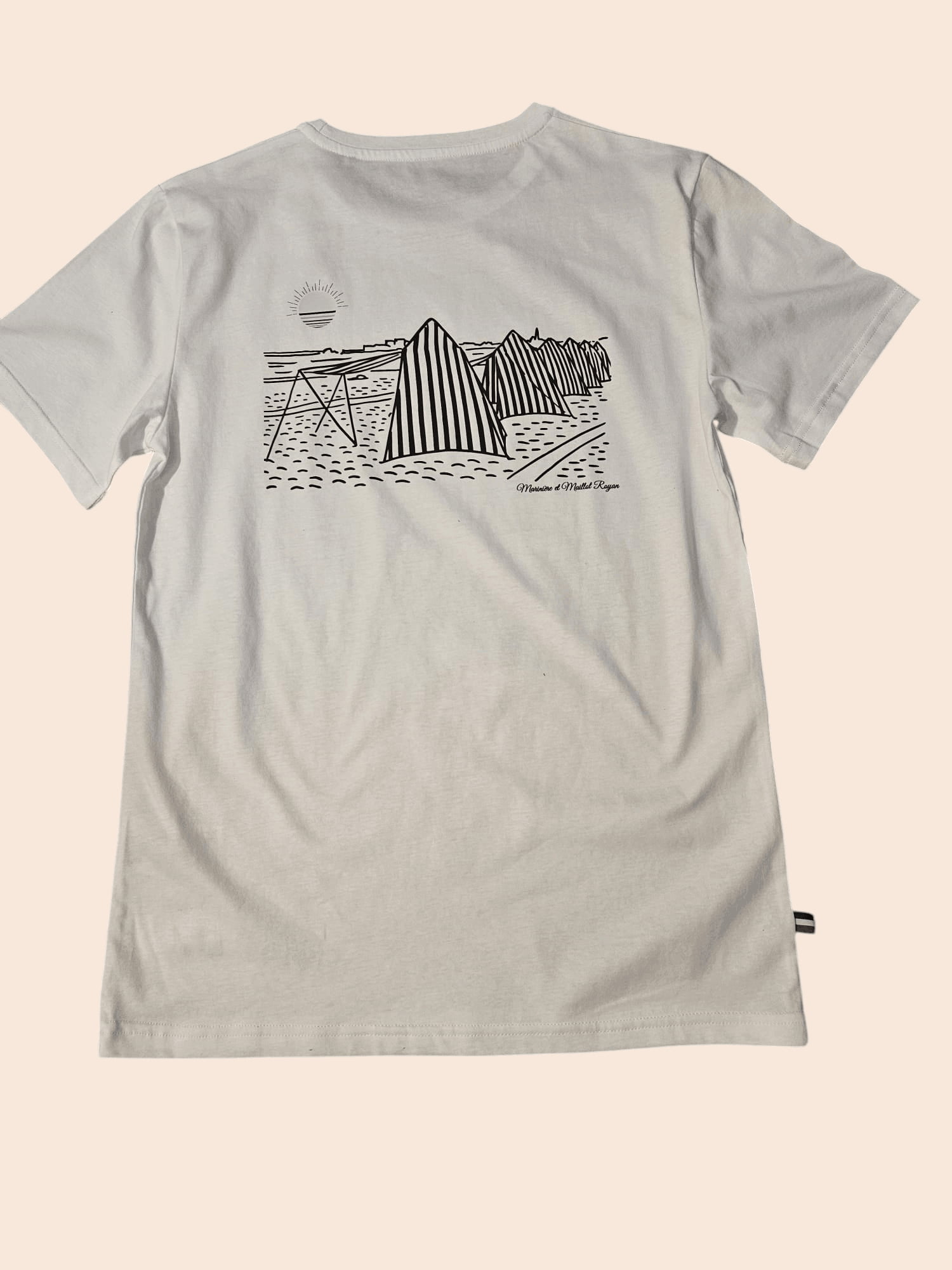 Affirmez votre style avec ce t-shirt blanc unisexe exclusif Marinière & Maillot, inspiré par l’univers maritime et les paysages du littoral. Son design minimaliste met en valeur une illustration épurée de cabanes de plage au dos, évoquant les ambiances estivales et l’élégance du bord de mer, tandis que la face avant reste volontairement sobre pour un look moderne et intemporel.